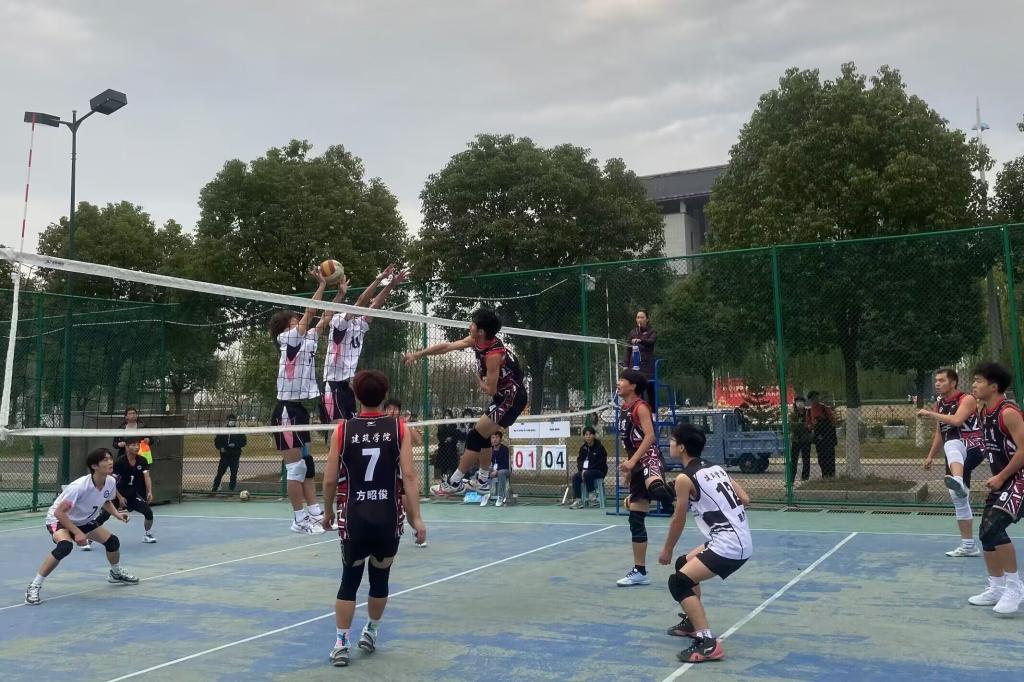 赛前,球员们进行了充分的热身,双方拉拉队们聚集在赛场四周翘首以待。随着裁判的一声哨响,比赛正式开始,建院男排队员们迅速进入状态,精准的传球、有力的叩打,逐渐将比分拉开,以25:14的比分取得开门红;第二局,电院男排队员逐渐进入状态,越打越顺,而建院队员们更胜一筹,以25:13的比分赢得第二局;比赛来到第三局,双方球员全力以拼,电院男排队员们放手一搏,持续进攻,以25:20的比分搬回一局;来到第四局,建院队员们冷静下来,稳扎稳打,以25:15赢得第四局,最终以3:1的比分战胜电气与电子工程学院,赢得了龙湖校区男排冠军!