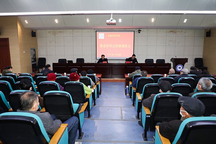 12月22日下午,我校在会议中心一楼报告厅召开离退休老同志校情通报会。院党委书记蒋德勤,党委委员、副院长黄远友出席会议。全体在校老同志、离退休工作处全体人员等参加会议,会议由黄远友主持。