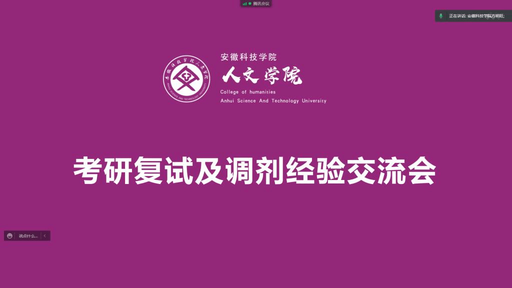 为持续推进考研工作,做好考研跟踪服务,给考研学生提供全面复试和调剂指导,2月28日—3月2日,人文学院分别为2022届法学和汉语言文学专业的毕业生举办了两场考研复试、调剂经验分享交流会。动物科学学院范雨梦老师、人文学院方明旺老师以及学院2020届、2021届部分优秀考研毕业生们作为特邀嘉宾到场分享经验。交流会由学院辅导员田野和李沙娜主持。