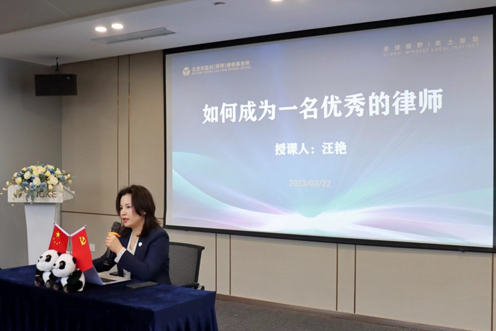 盈科(蚌埠)律师事务所党支部书记汪艳代表律所对米乐官方网站_米乐(中国)股份有限公司,人文学院“盈科班”师生表示热烈欢迎。汪艳带领同学们参观了律所办公环境和硬件设施,并通过播放宣传片介绍了盈科文化及律所概况。