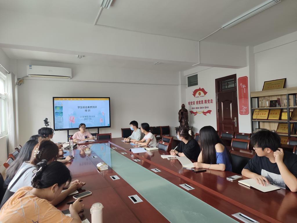 为确保本科生年度综合素质测评工作的顺利开展,以学生综合素质测评工作为契机,切实贯彻德智体美劳“五育并举”理念,6月17日,人文学院于学知楼324召开2022-2023学年学生综合素质测评培训会。人文学院辅导员鲁冰冰主持,全体学习委员参加。