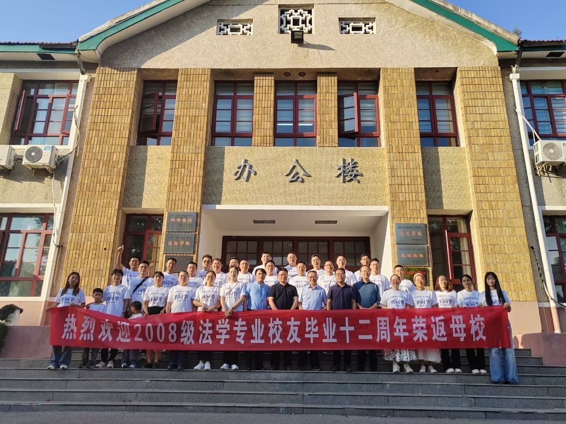 2024年10月1日,丹桂飘香,举国欢庆,人文学院2008级法学专业的31位校友,身着“青春不散场”的统一服装,怀着对母校的深深眷恋和对青春岁月的美好回忆重返校园,在学知楼324会议室参加学院举办的温馨而富有意义的校友座谈会,学院党政领导、2008级法学专业两位班主任老师骆绪刚、宣刚及学院就业工作联系人焦雪松等出席。