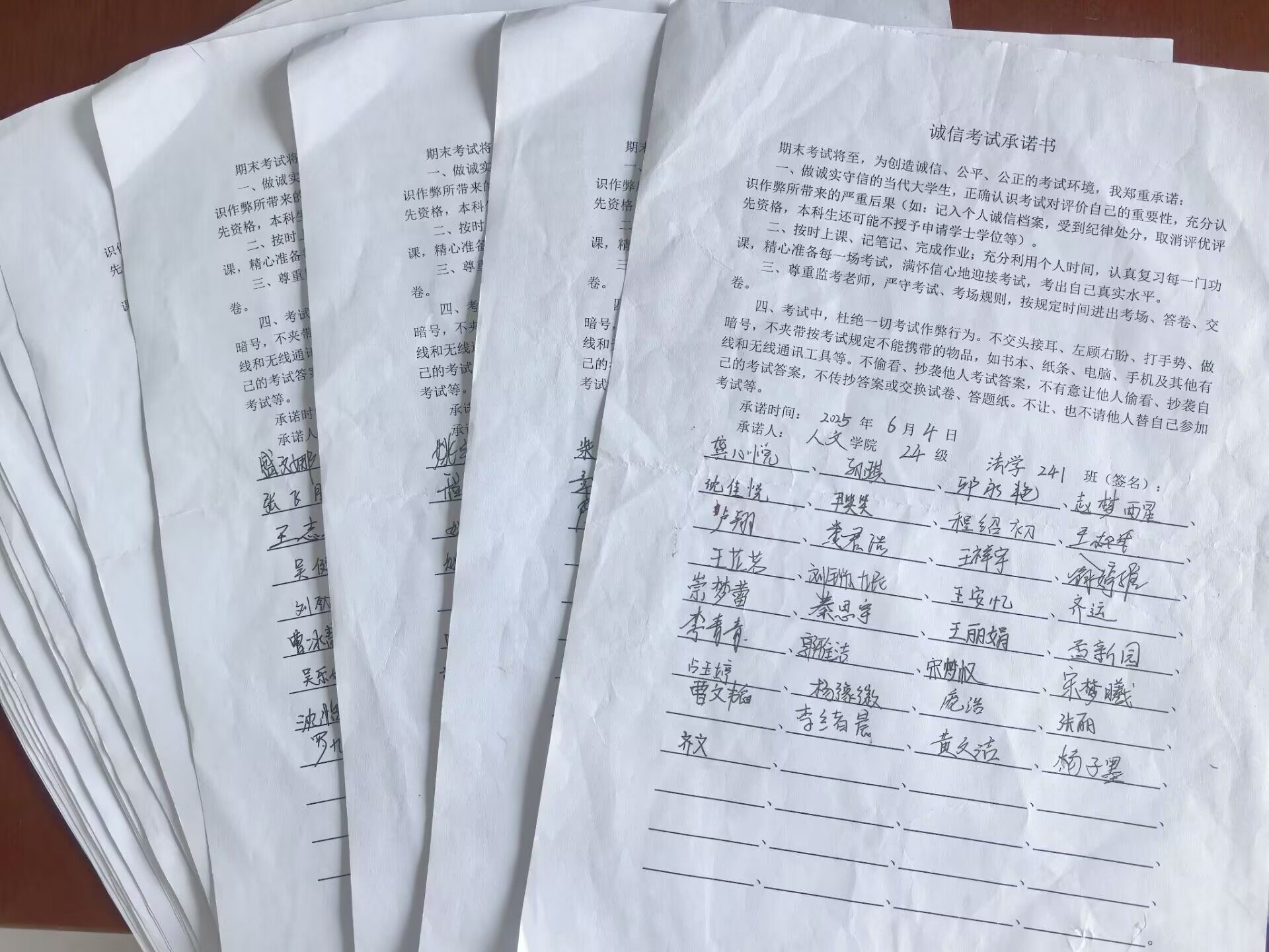 5月30日,学院组织签订诚信文明考试承诺书。各班同学认真阅读承诺书内容,郑重承诺在考试中严格遵守考场纪律,如实答卷、拒绝作弊,并依次在承诺书上签字。此次活动旨在强化学生的诚信意识,营造公平公正的考试环境,为广大同学的学业成长和未来发展提供了有力保障。