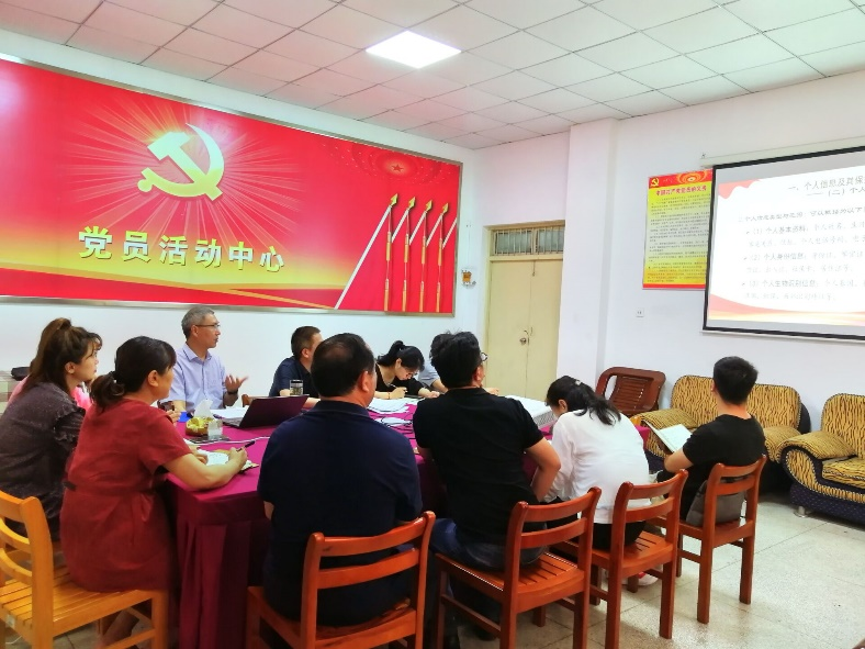 6月21日下午,图书馆支部副书记王玉林以“读者信息及其保护”为题,在图书馆党员活动室讲授主题教育专题党课图书馆支部全体党员参加。
