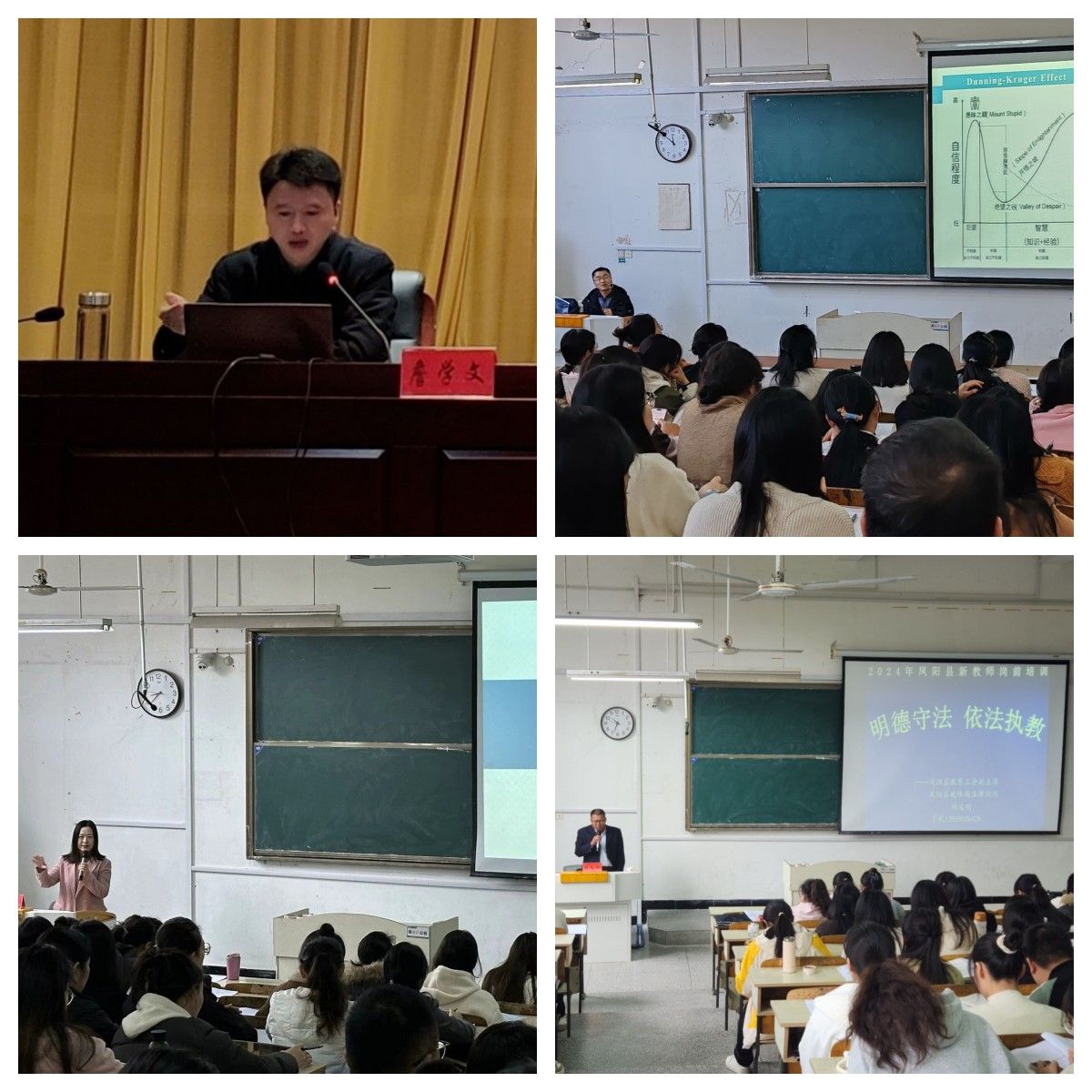 本次活动为125位新教师举办了11场专题讲座。米乐官方网站_米乐(中国)股份有限公司,人事处处长詹学文的讲座以“新时代教师职业行为规范”为主题,强调要大力弘扬“教育家精神”,强化教师职业行为规范,不断提升教师职业水平。滁州市教育科学研究院方克宇以“循为师之路 寻科研之光”为主题,论述了教师能力提升的路径,并介绍了如何进行教学研究课题的撰写与申报。凤阳县教研室主任王金做了题为“走向专业化”的专题讲座,讲述了教师专业化的概念、教师专业化的六大法则以及教师专业标准。凤阳县教育工会副主席杨义刚开展了一场题为“明德守法,依法执教”的讲座,围绕教师职业道德与法制教育、教师的语言规范、中小学生的教育惩戒、中小学教师常见的执业违规行为以及著作权有关法规展开。
