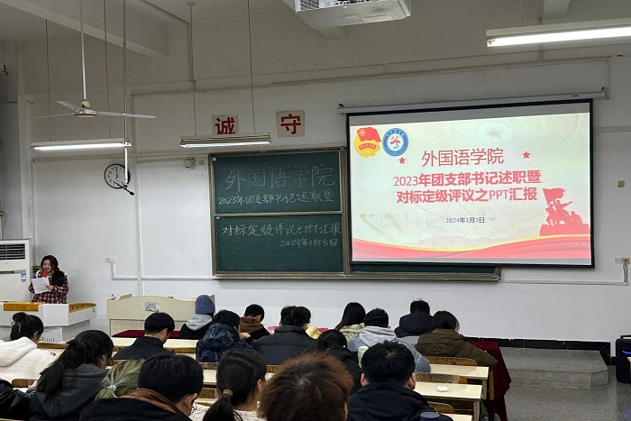为加强基层团支部建设,检验各团支部的工作成效,1月5日,外国语学院在求知楼A座105教室召开2023年团支部书记述职暨对标定级评议会。学团委全体成员、各团支部书记参加会议,评议会由学院团委委员朱晴睛主持。