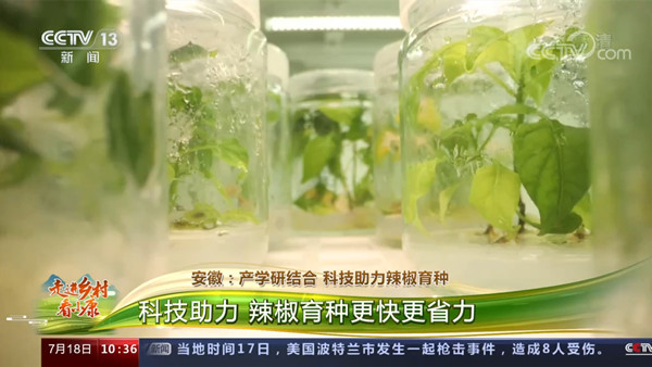 7月18日上午10:30分许,央视新闻频道(CCTV-13)《走进乡村看小康》详细报道了我校农学院辣椒课题组与宿州市萧县在辣椒产业发展中的产学研合作和助力当地科技兴农的有关情况。
