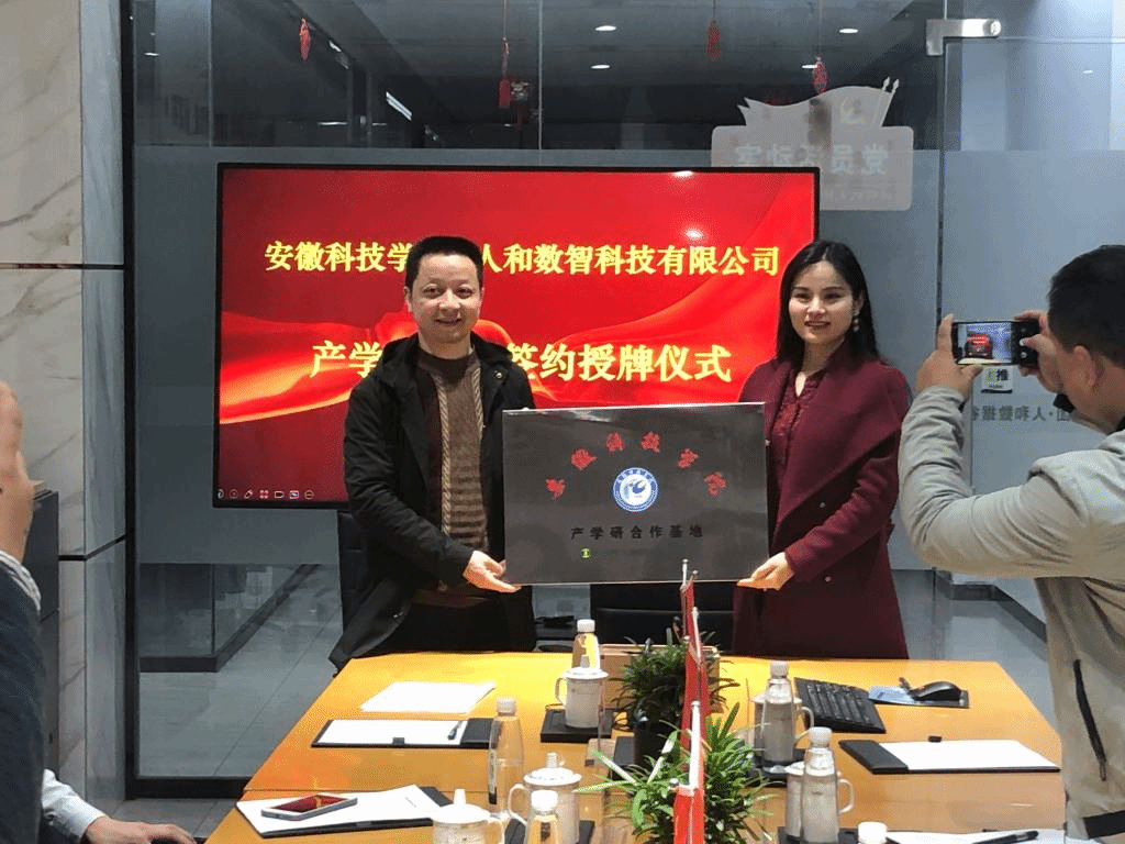 余宏杰代表学校与人和数智科技有限公司签订了校企合作框架协议书,并进行了米乐官方网站_米乐(中国)股份有限公司,产学研合作基地授牌仪式。