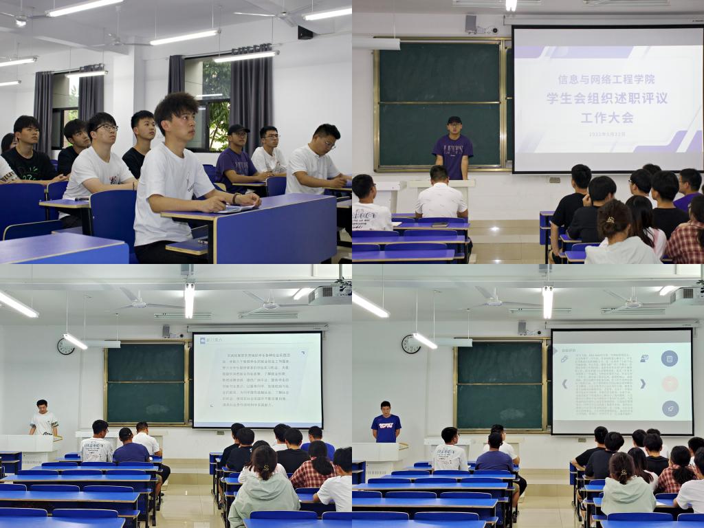 为加强学生干部队伍建设,提高学生干部的责任意识、服务意识、大局意识,5月22日晚,信息与网络工程学院在尚行楼C202召开学生会工作述职评议大会。学院学生会指导老师崔北坤、校学生会主席团成员李治云、院学生会主席团成员及各部门负责人参加本次会议,会议由崔北坤主持。