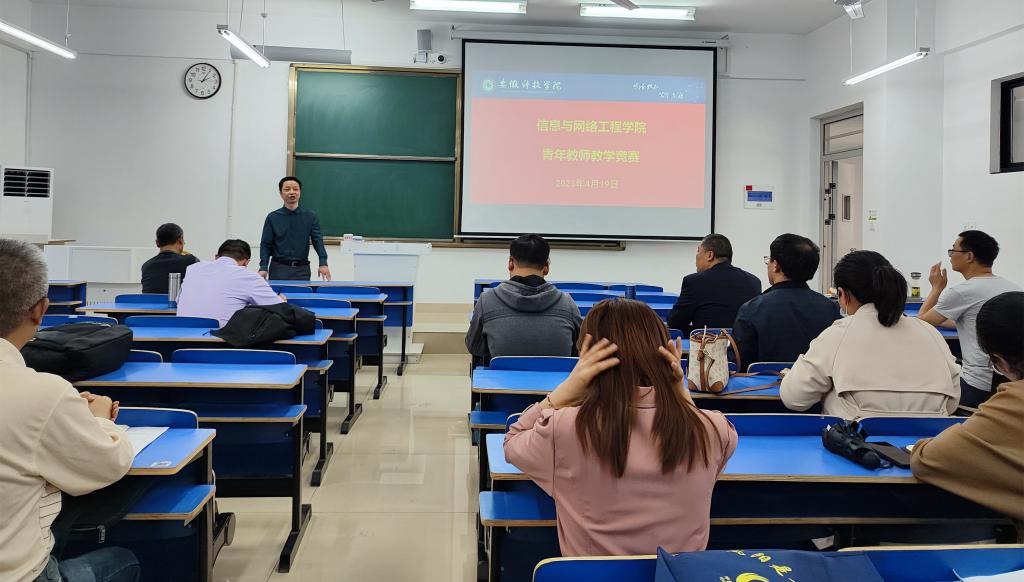 为进一步加强青年教师队伍建设,提升青年教师教学能力和业务水平,信息与网络工程学院于4月19日下午在尚行楼C203教室举办了第七届青年教师课堂教学竞赛选拔赛。本次活动由院长余宏杰主持,校教学督导黄保宏教授、马克思主义学院侯保龙副教授、机械工程学院缑瑞宾副教授担任评委,学院全体青年教师参与观摩。