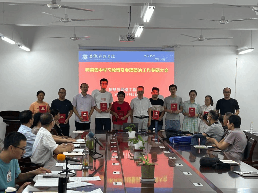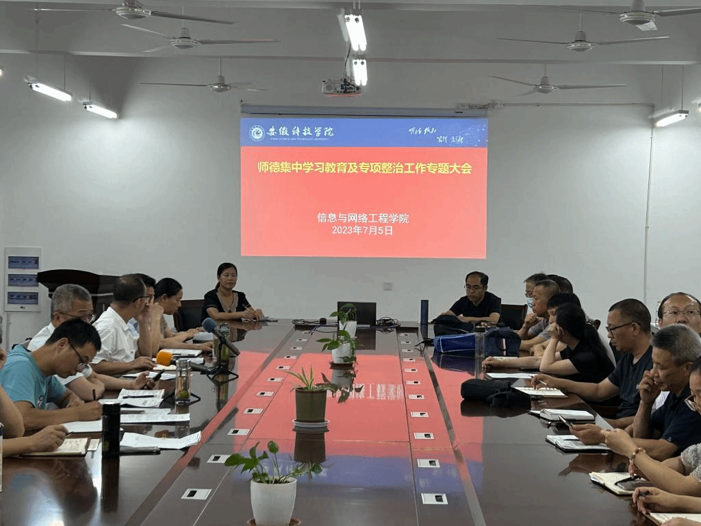 为认真贯彻落实教育部及省委教育工委、省教育厅有关师德师风文件及批示精神,扎实推进学院各项工作,7月5日下午,信息与网络工程学院在尚行楼B418会议室召开师德集中学习教育及专项整治工作专题大会,学院党政领导及全体教职工参加会议,会议由学院党委书记王振其主持。