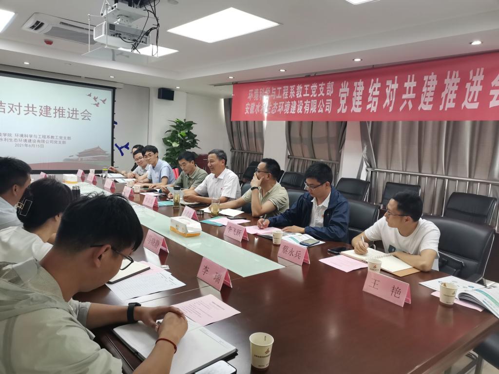 为进一步提高党史学习教育的学习效果,发挥高校党支部的科技服务企业的作用。6月15日,省级“先进基层党组织”、资源与环境学院环境科学与工程系教工党支部全体党员,在党委书记李孟良和党委副书记、院长李孝良的带领下,赴安徽水利生态环境建设有限公司开展党建结对共建,与企业共迎中国共产党成立100周年。